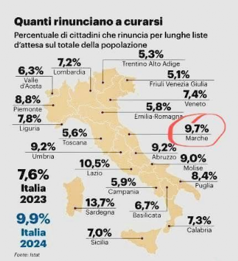 Nel 2024, in base ai dati dell’Istat, una persona su dieci ha rinunciato ad almeno una prestazione sanitaria, il 6,8% a causa delle lunghe liste di attesa e il 5,3% per ragioni economiche. E la motivazione relativa alle liste di attesa è cresciuta del 51% rispetto al 2023.
